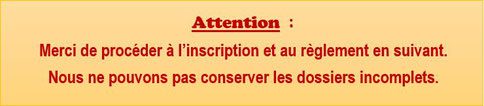 Attention : merci de bien vouloir noter que votre inscription ne pourra être validée qu'une fois que nous aurons reçu :